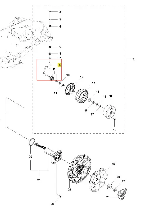 Wrzeciono robota koszącego AUTOMOWER 315X Husqvarna - wysokiej jakości oryginalna część producenta Husqvarna. Aktualny numer katalogowy produktu: 585187201. Szczegóły montażu dostępne w załączonym schemacie. Poniżej znajduje się lista modeli, w których ten element jest również wykorzystywany.