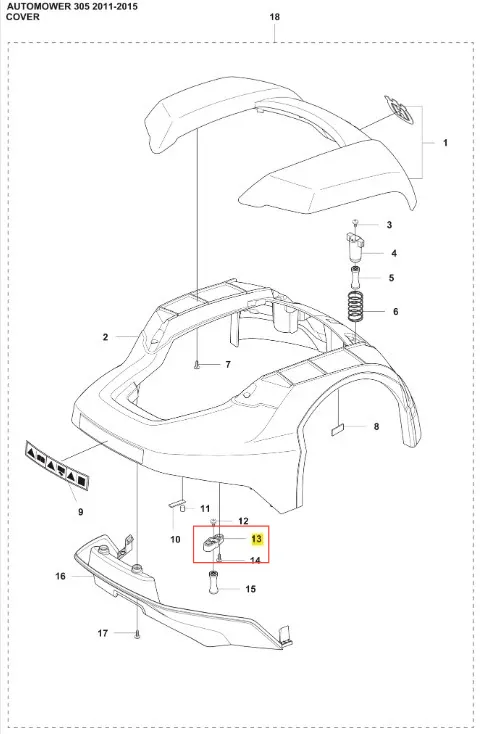 Wysokiej jakości wspornik robota koszącego Automower 305 Husqvarna. Produkt oryginalny od Husqvarna, oznaczony numerem katalogowym: 575416002. Wszystkie szczegóły dotyczące montażu dostępne są w schemacie. Poniżej znajduje się lista modeli, w których ten element jest również wykorzystywany.