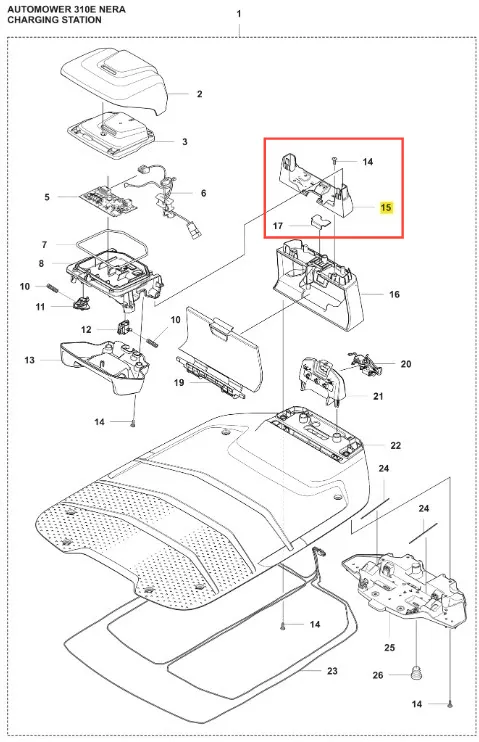 Wspornik robota koszącego Automower 310E NERA Husqvarna - oryginalny element firmy Husqvarna. Charakteryzuje się wysoką jakością i trwałością. Numer katalogowy: 535558603. Dokładne informacje o montażu znajdziesz w załączonym schemacie. Poniżej znajduje się lista modeli, w których ten element jest również wykorzystywany.