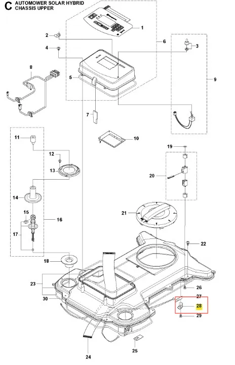 Wysokiej jakości wspornik robota koszącego Automower Solar Hybrid Husqvarna. Produkt oryginalny od Husqvarna, oznaczony numerem katalogowym: 535127901. Wszystkie szczegóły dotyczące montażu dostępne są w schemacie. Poniżej znajduje się lista modeli, w których ten element jest również wykorzystywany.