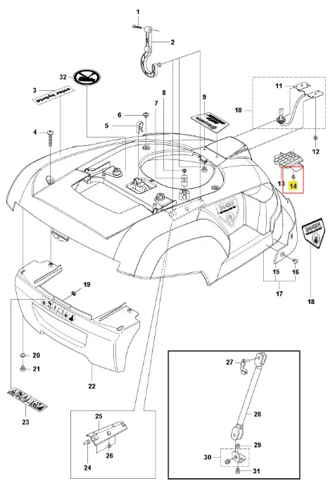 Wspornik robota koszącego Automower Solar Hybrid Husqvarna - oryginalny element firmy Husqvarna. Charakteryzuje się wysoką jakością i trwałością. Numer katalogowy: 535130401. Dokładne informacje o montażu znajdziesz w załączonym schemacie. Poniżej znajduje się lista modeli, w których ten element jest również wykorzystywany.