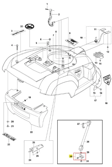 Wspornik robota koszącego Automower Solar Hybrid Husqvarna - oryginalna część producenta, wykonana z wysokiej jakości materiałów. Aktualny numer katalogowy: 504703402. Instrukcje montażowe znajdują się w schemacie. Poniżej znajduje się lista modeli, w których ten element jest również wykorzystywany.