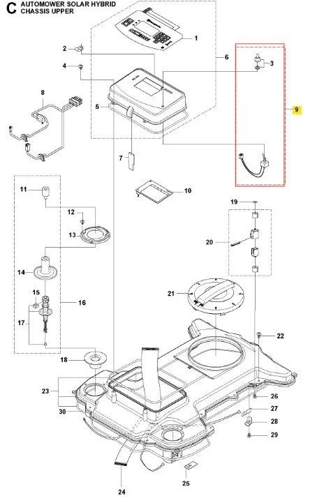 Wysokiej jakości wyłącznik robota koszącego Automower Solar Hybrid Husqvarna. Produkt oryginalny od Husqvarna, oznaczony numerem katalogowym: 535123901. Wszystkie szczegóły dotyczące montażu dostępne są w schemacie. Poniżej znajduje się lista modeli, w których ten element jest również wykorzystywany.