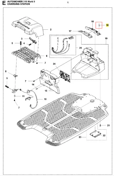 Zacisk robota koszącego Automower 310 Mark II Husqvarna - wysokiej jakości oryginalna część producenta Husqvarna. Aktualny numer katalogowy produktu: 580504101. Szczegóły montażu dostępne w załączonym schemacie. Poniżej znajduje się lista modeli, w których ten element jest również wykorzystywany.