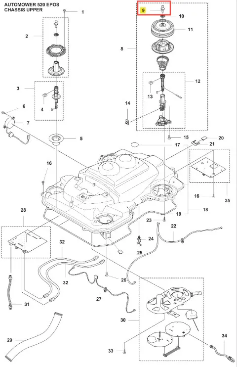 Zaślepka robota koszącego Automower 520 EPOS Husqvarna - oryginalny element firmy Husqvarna. Charakteryzuje się wysoką jakością i trwałością. Numer katalogowy: 580526701. Dokładne informacje o montażu znajdziesz w załączonym schemacie. Poniżej znajduje się lista modeli, w których ten element jest również wykorzystywany.
