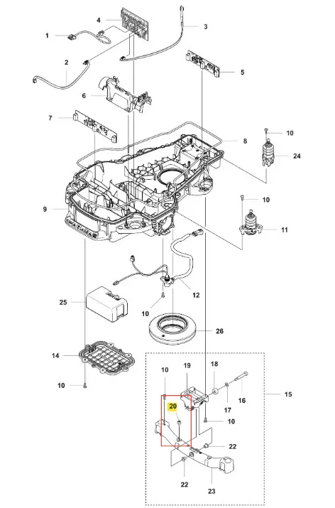 Oryginalna część Husqvarna – zderzak robota koszącego Automower 320 NERA z technologią bezprzewodową Husqvarna. Wykonana z wysokiej jakości materiałów, zapewnia niezawodność działania. Numer katalogowy: 535293701. Szczegóły dotyczące montażu zawarte są w schemacie. Poniżej znajduje się lista modeli, w których ten element jest również wykorzystywany.