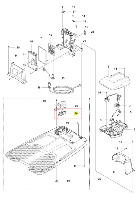 Zespół mostka robota koszącego Automower 560 EPOS Husqvarna - oryginalny element firmy Husqvarna. Charakteryzuje się wysoką jakością i trwałością. Numer katalogowy: 547586001. Dokładne informacje o montażu znajdziesz w załączonym schemacie. Poniżej znajduje się lista modeli, w których ten element jest również wykorzystywany.