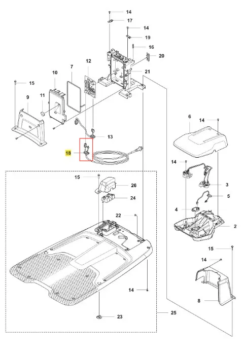 Wysokiej jakości zespół okablowania zasilacza robota koszącego Automower 560 EPOS Husqvarna. Produkt oryginalny od Husqvarna, oznaczony numerem katalogowym: 548480101. Wszystkie szczegóły dotyczące montażu dostępne są w schemacie. Poniżej znajduje się lista modeli, w których ten element jest również wykorzystywany.