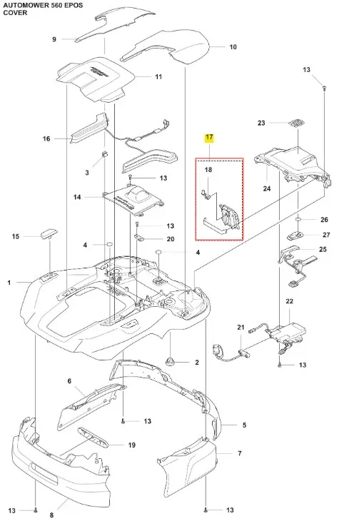 Zestaw czujników robota koszącego Automower 560 EPOS Husqvarna - oryginalna część producenta, wykonana z wysokiej jakości materiałów. Aktualny numer katalogowy: 538876302. Instrukcje montażowe znajdują się w schemacie. Poniżej znajduje się lista modeli, w których ten element jest również wykorzystywany.