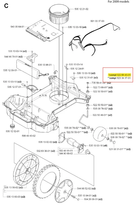 Zestaw uzup.koła robota koszącego Automower 220 AC Husqvarna - oryginalna część producenta, wykonana z wysokiej jakości materiałów. Aktualny numer katalogowy: 522664501. Instrukcje montażowe znajdują się w schemacie. Poniżej znajduje się lista modeli, w których ten element jest również wykorzystywany.
