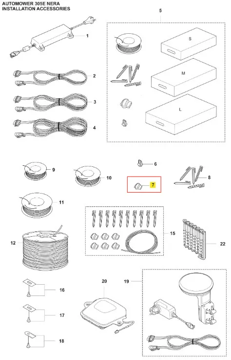 Złączka robota koszącego Automower 305E NERA Husqvarna - oryginalny element firmy Husqvarna. Charakteryzuje się wysoką jakością i trwałością. Numer katalogowy: 536085402. Dokładne informacje o montażu znajdziesz w załączonym schemacie. Aby uzyskać pełną listę modeli, do których pasuje ta część zamienna, prosimy o kontakt.